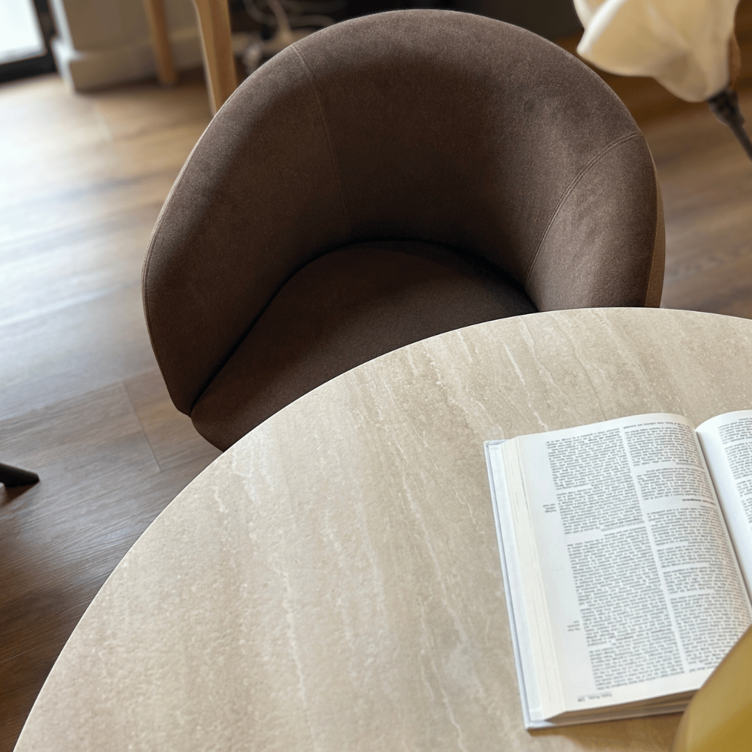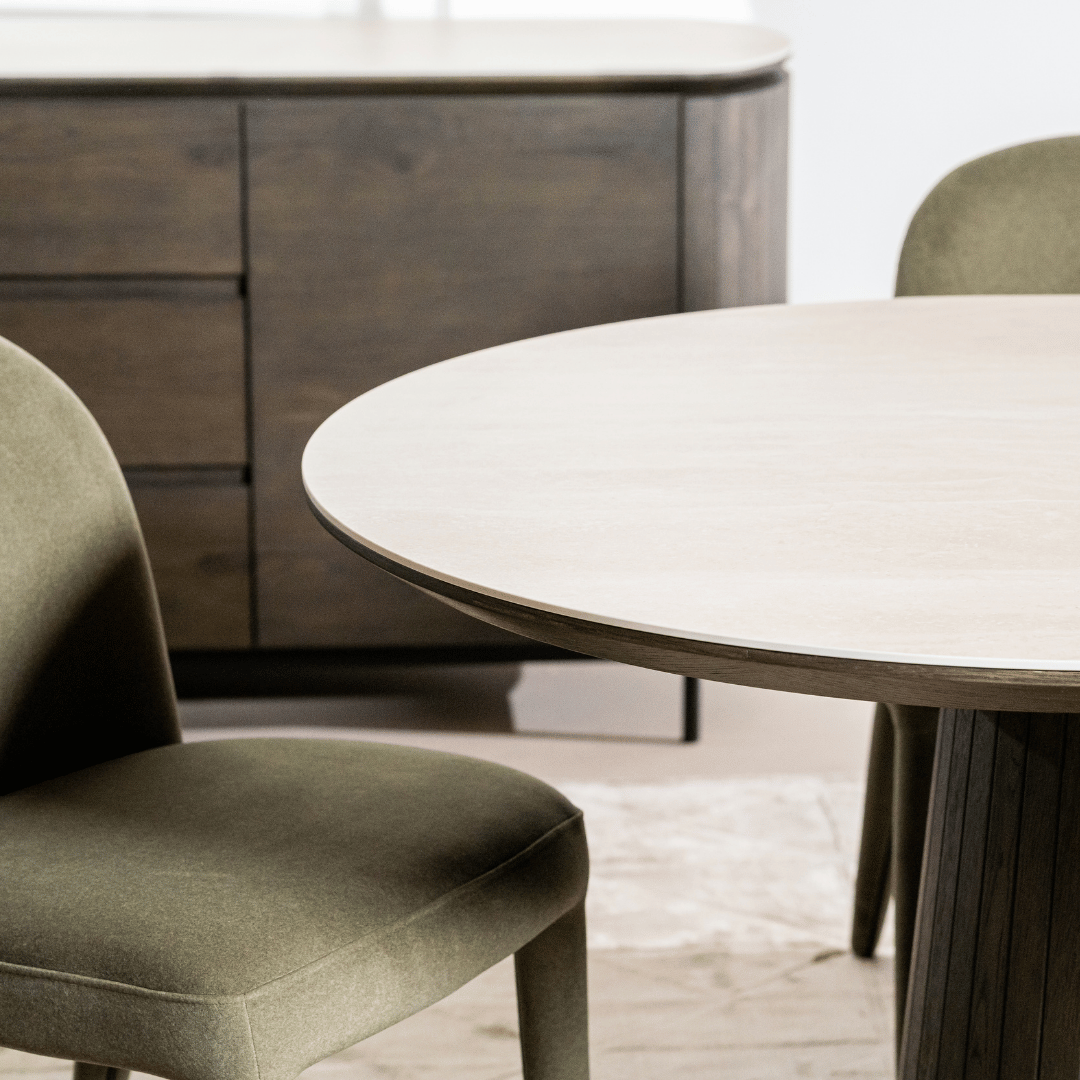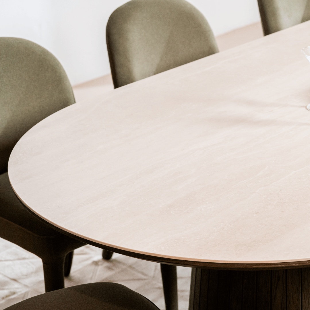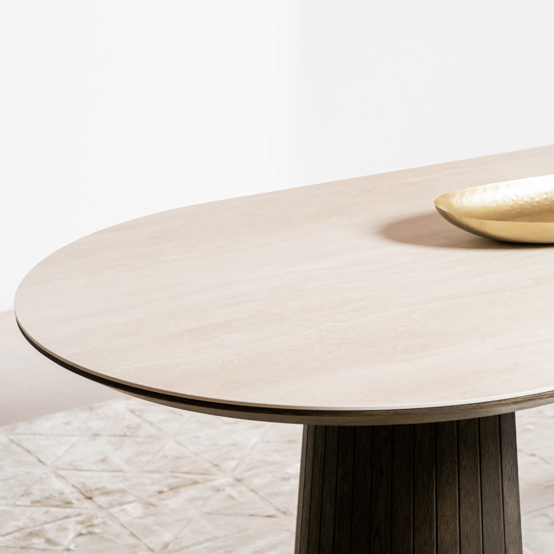 Valais Ceramic Oval Dining Table | Travertine