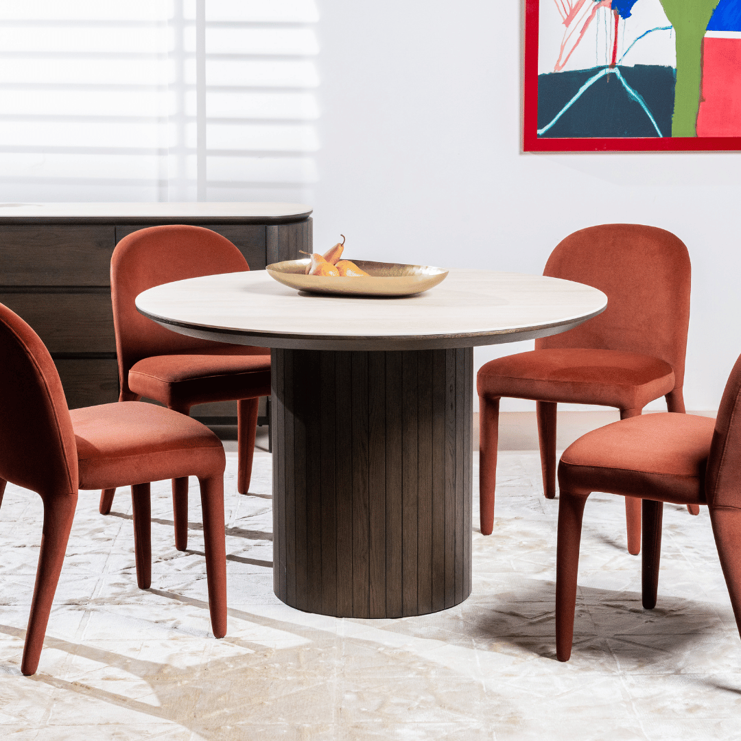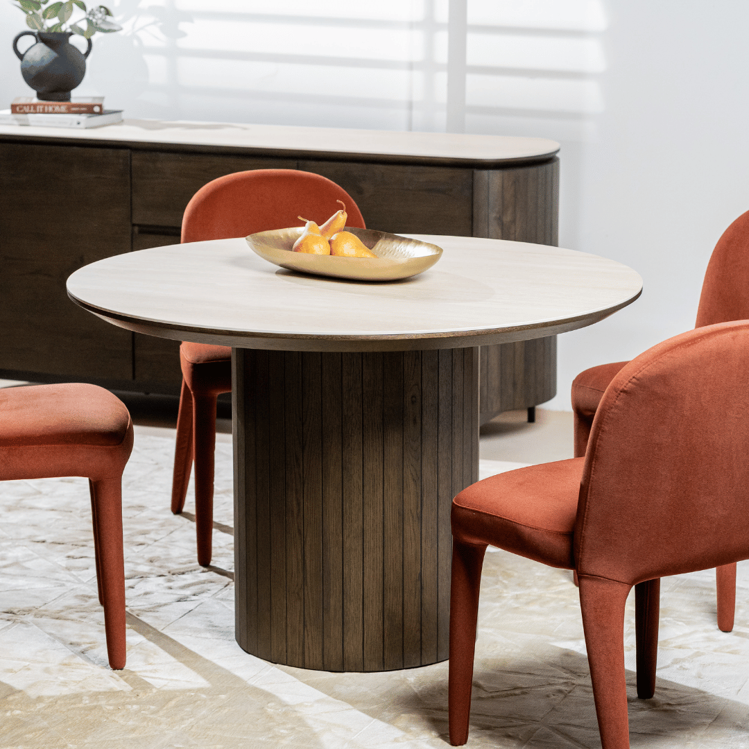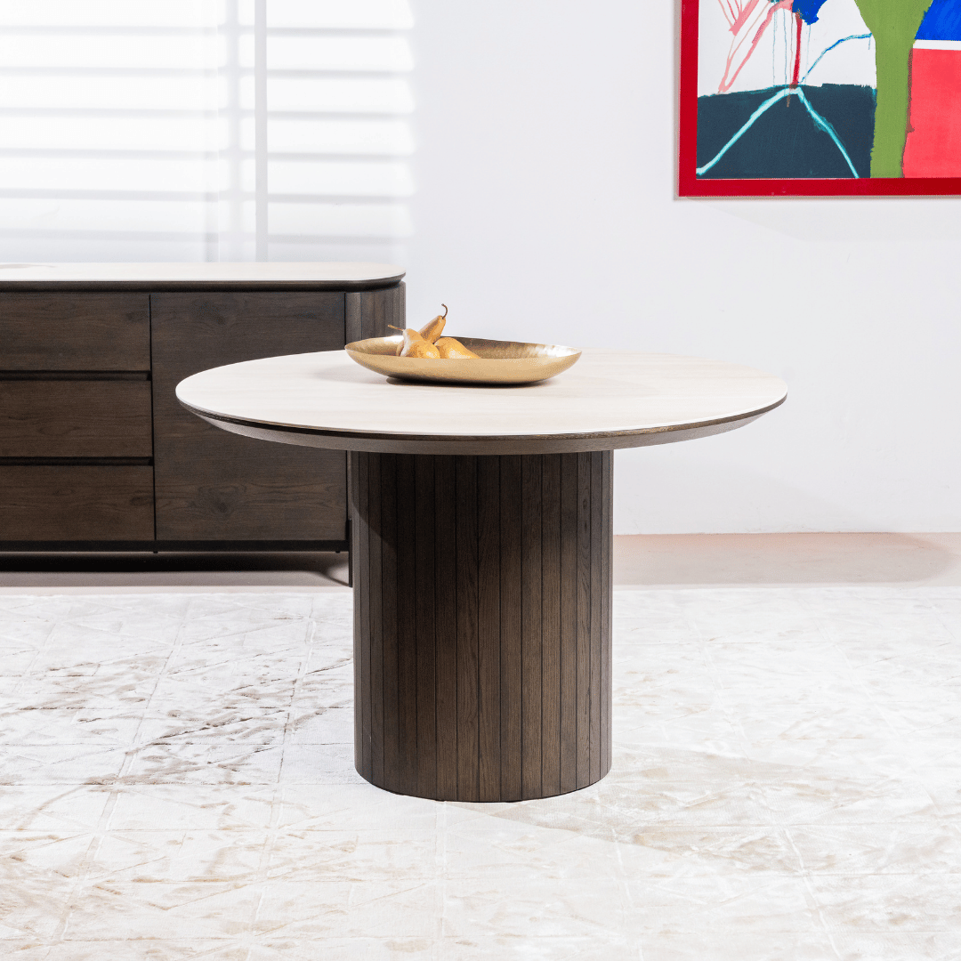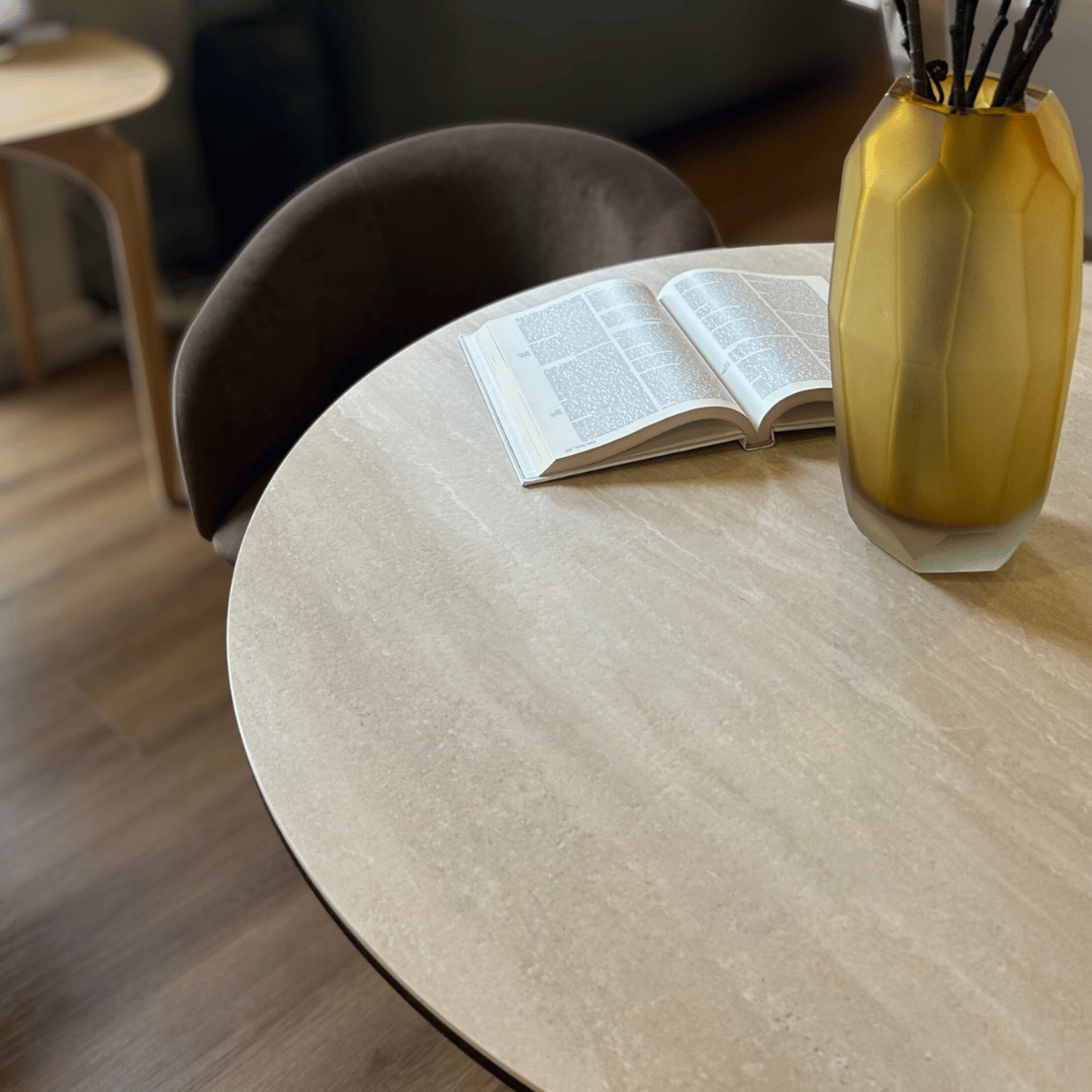 Valais Ceramic Round Dining Table | Travertine