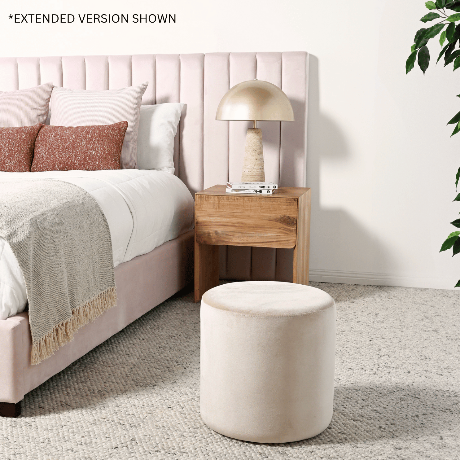 The Zander bed will be a luxurious and stylish addition to any bedroom space. The vertical ribbed detailing enhances the plush velvet fabric, whilst the exaggerated height envelops you in comfort and design. Being meticulously constructed with high-quality materials, this elegant bed head will ground your bedroom space.